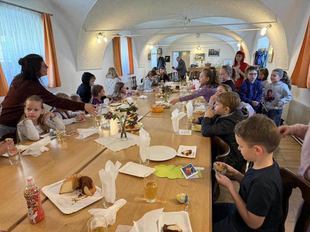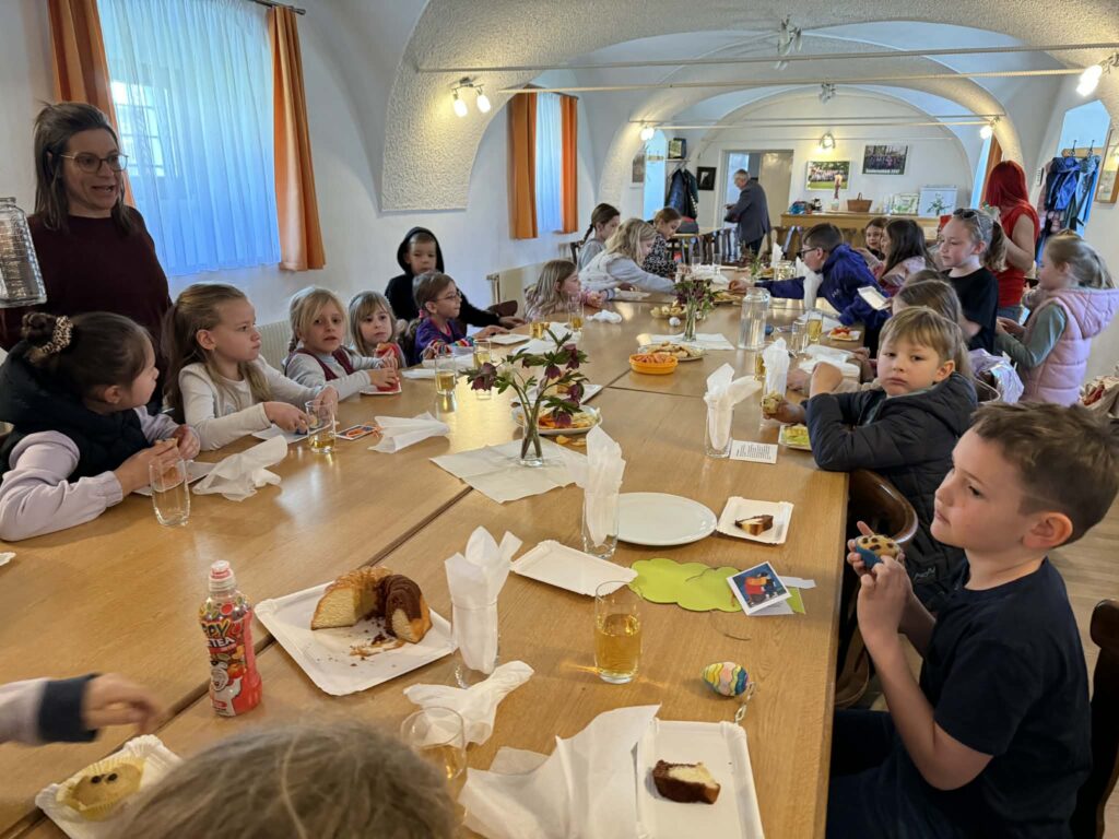 Nachdem alle Kinder das Sakrament empfangen hatten, wurde gemeinsam ein Fest der Versöhnung gefeiert. Bei Kuchen, Knabbergebäck und Getränken genossen die Kinder die fröhliche Atmosphäre und das Gefühl, etwas Wichtiges geschafft zu haben.