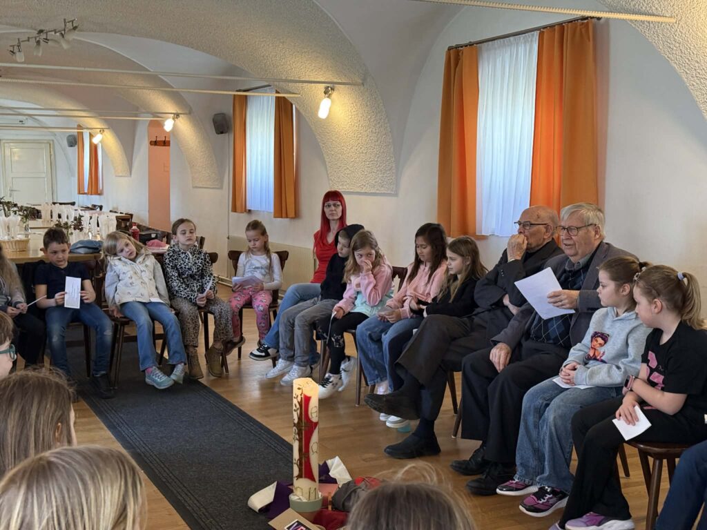 Am 14. März 2026 feierten unsere Erstkommunionkinder das Sakrament der Versöhnung im Pfarrhof – ein Tag, der für viele von ihnen zu einem besonderen und bleibenden Erlebnis wurde. Drei Priester standen zur Verfügung, um mit den Kindern das Sakrament der Versöhnung zu feiern: P. Klaus, P. Josef und Stefane.
