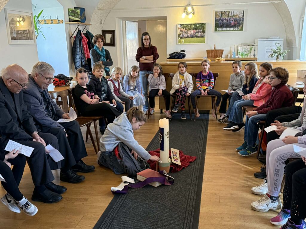 Zu Beginn stimmte P. Klaus Coolen die Kinder mit seinen Gedanken auf das Fest ein. In einer ruhigen und kindgerechten Atmosphäre bereitete er sie darauf vor, was Versöhnung bedeutet und wie befreiend es sein kann, Belastendes auszusprechen und neu anzufangen.