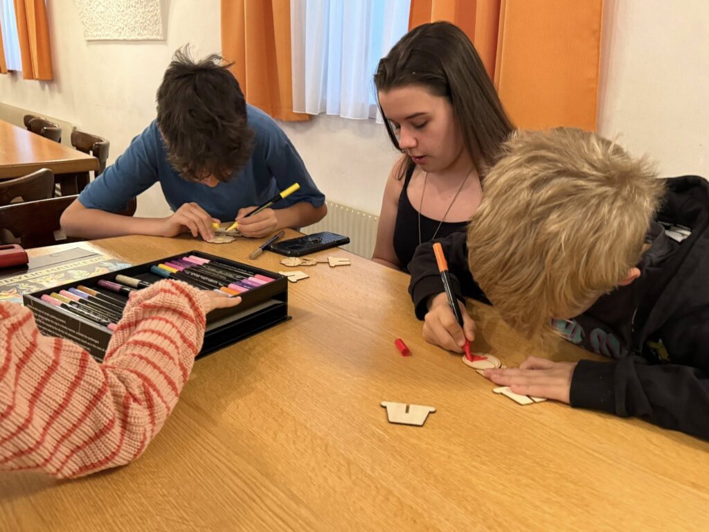 Zu Beginn hatten die Kinder die Möglichkeit, verschiedene Holzblumen kreativ zu bemalen. Mit viel Freude und Fantasie entstanden dabei bunte und individuelle Kunstwerke.